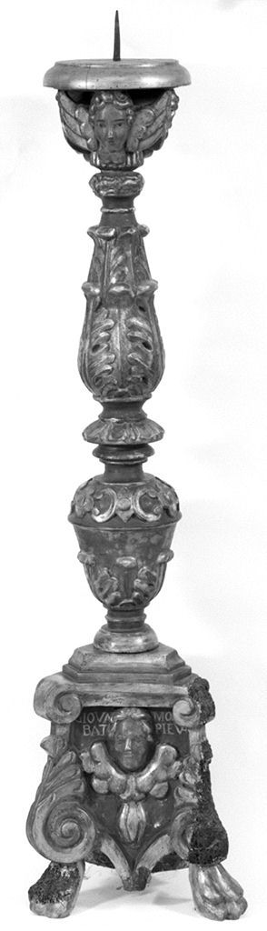 - NOTIZIE STORICO CRITICHE Giovanni Battista Mori, a cui si riferisce l'iscrizione posta su di uno dei candelabri, fu pievano della chiesa di S. Pietro dal 1666 al 1680. Datiamo perciò i candelabri a questo arco di tempo. Non è stato invece possibile sciogliere l'iscrizione (ANDREA RAF(...) ecc.) sull'altro candelabro