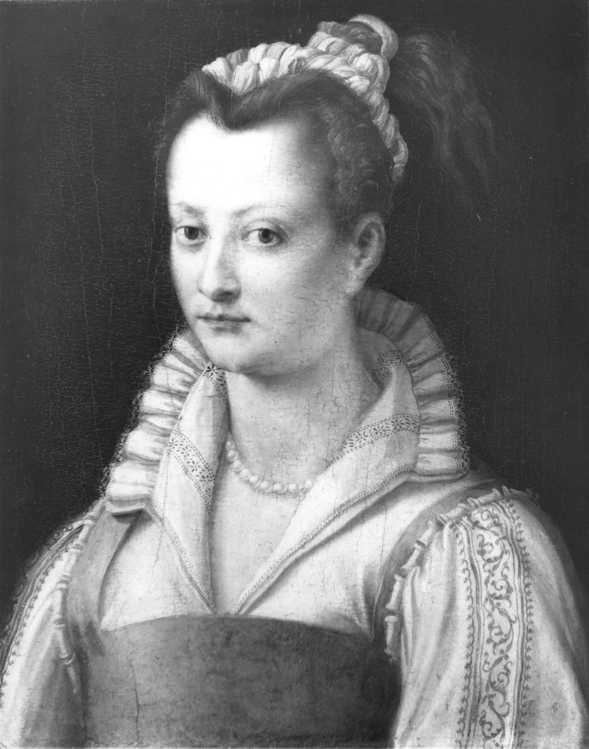 - NOTIZIE STORICO CRITICHE Il bel ritratto di Eleonora o Dionora Garcia di Toledo (1553-1576), nipote della Granduchessa omonima, andata sposa a Pietro di Cosimo I dei Medici dal 1571, è una derivazione da quello a figura intera raffigurante lo stesso personaggio, conservato nel Museo Stibbert di Firenze con l'attribuzione a Francesco Brina, allievo di Michele Tosini detto Michele di Ridolfo del Ghirlandaio e protagonista del rinnovamento della pittura fiorentina del settimo e ottavo decennio del Cinquecento assieme al Macchietti e al Cavalori. Per il dipinto poliziano Laura Martini propone pertanto l'attribuzione alla bottega del Brina e una datazione intorno agli anni Settanta del XVI secolo