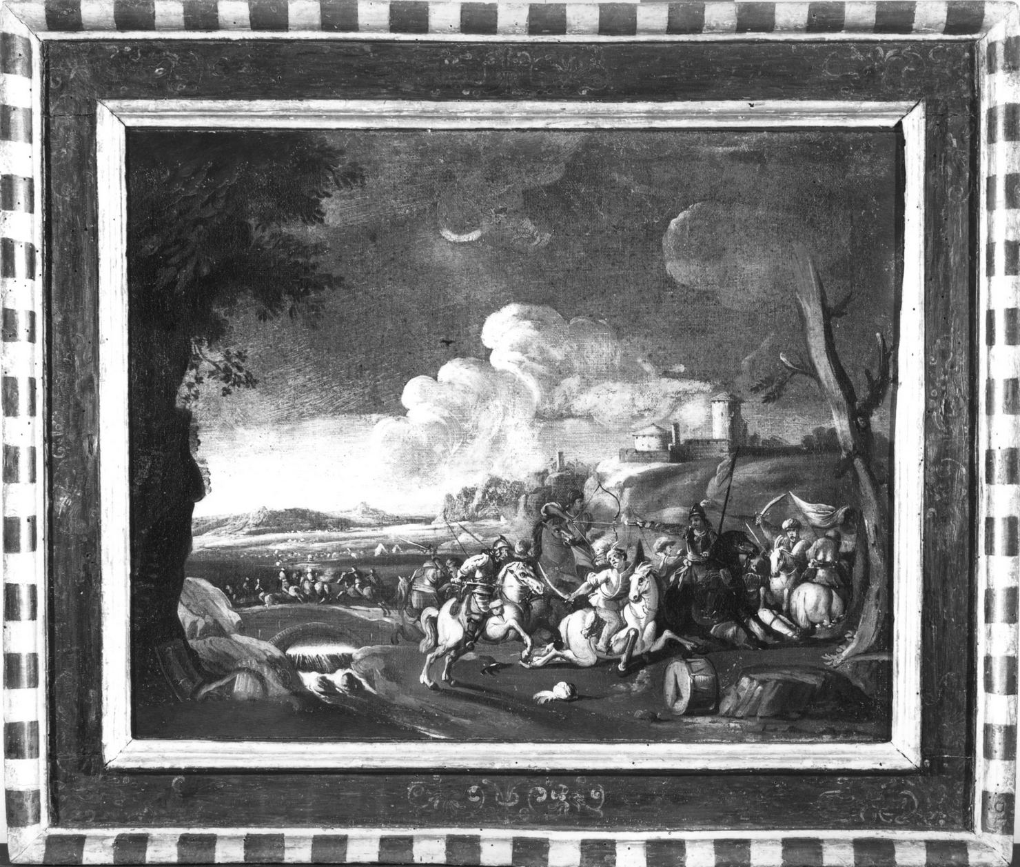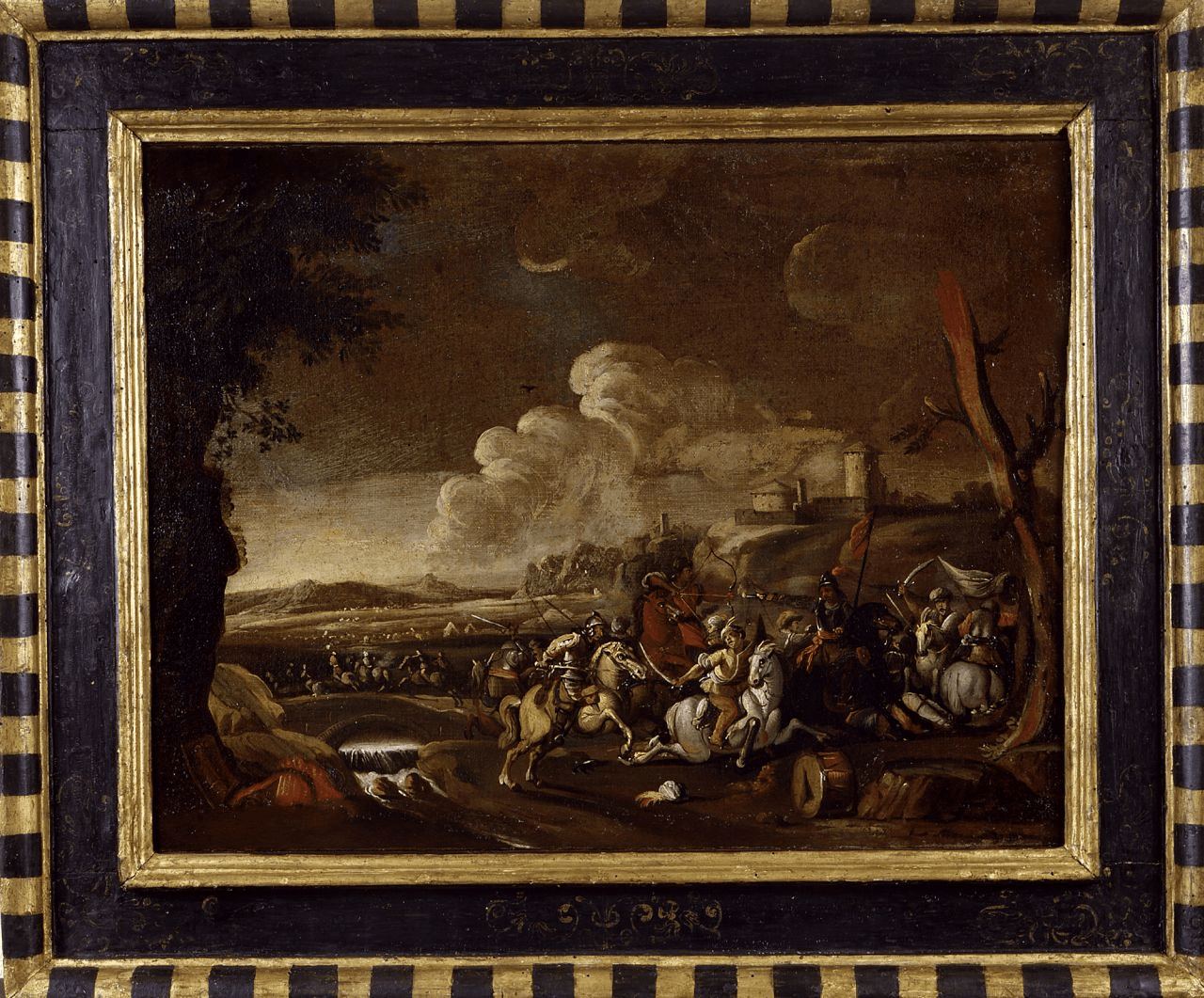 - NOTIZIE STORICO CRITICHE il dipinto, raffigurante un paesaggio con scena di battaglia, mostra tratti stilistici di gusto ancora tardo manieristico derivati dai modelli di Paul Brill e di Antonio Tempesta. Laura Martini (2000) suggerisce di riferire la tela alla mano di un artista toscano attivo tra la fine del XVI secolo e gli inizi del successivo