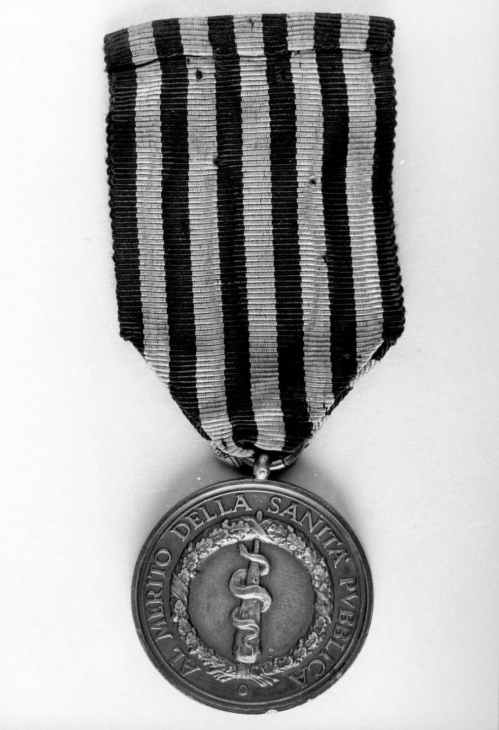 medaglia in argento; sul dritto è l'effigie di Vittorio Emanuele III, mentre sul rovescio è un emblema raffigurante una serpe attorcigliata ad un tronco entro una ghirlanda