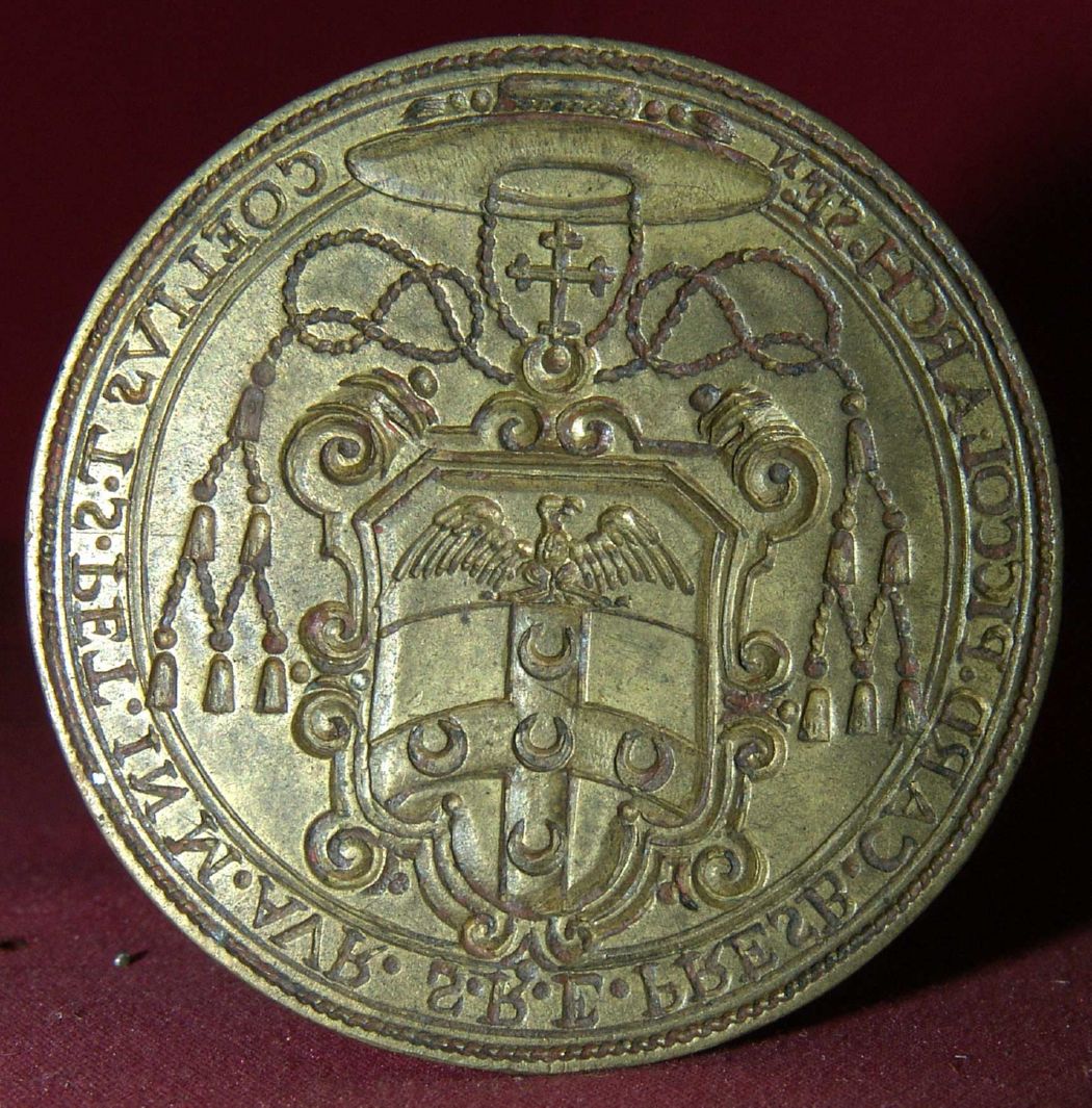 - ISCRIZIONI sulla leggenda - COELIUS T(ITULI) S(ANCTI) PET(RI) IN M(ONTE) AUR(EO) S(...) R(...) E(...) PRESB(YTER) CARD(INALIS) PICCOL(OMINEUS) ARCH(IEPISCOPUS) SEN(ENSIS) - lettere capitali -