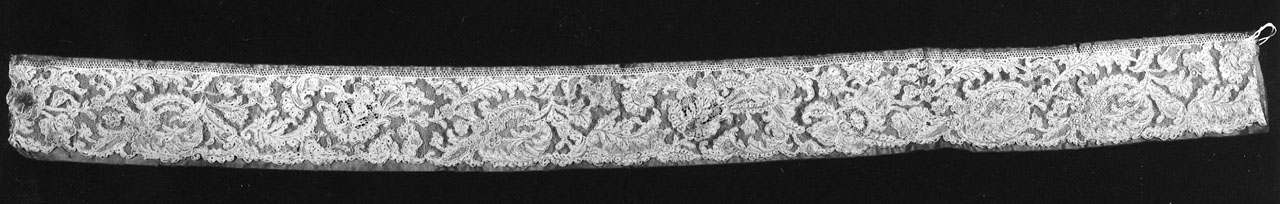 - NOTIZIE STORICO CRITICHE Il tipo di rete simile a quella leggera di Alençon ma con andamento verticale, i punti di esecuzione che caratterizzano le parti solide e traforate del disegno,caratterizzato da vegetazione di gusto Rococò, indicano la rara tipologia settecentesca del Venise a réseaux, riproposta poi nella Scuola di Burano del 1872 come Punto Burano (D.Davanzo Poli 1998,p.78). Alla metà del XVIII secolo questa tipologia testimonia la volontà della manifattura veneta di rinnovare la sua produzione, sotto l'influenza dei merletti ad ago con il fondo a rete, più leggeri e maneggevoli prodotti in Francia e nelle Fiandre