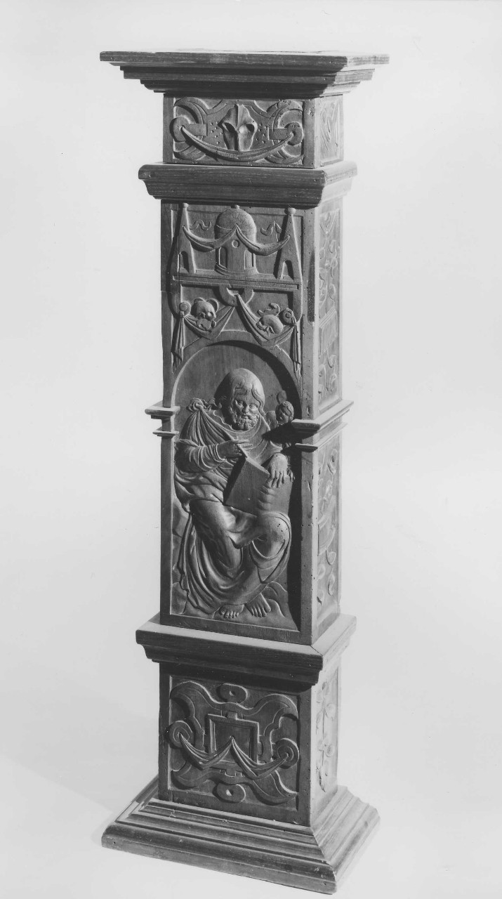 - NOTIZIE STORICO CRITICHE I due colonnini in legno recano al centro la raffigurazione dell'evangelista Matteo (Inv. 15 I) e delll'evangelista Luca (Inv. 16 I). Di epoca cinquecentesca, sono forse collocabili in ambito veneziano