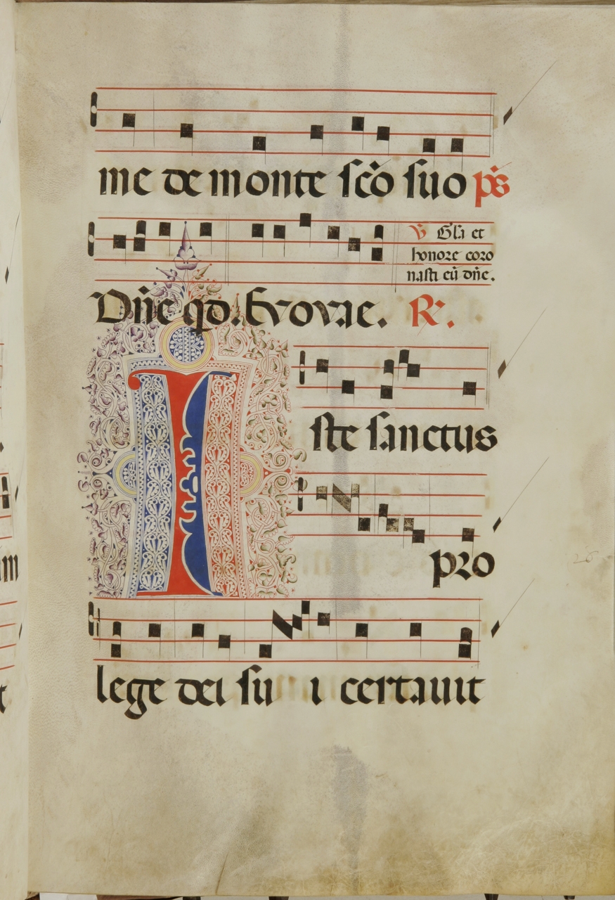 Iniziale filigranata rifessa grande caudata I (Iste sanctus), rubr. Responsorius