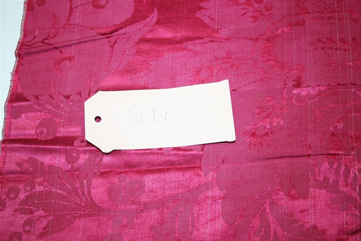 Frammenti in damasco gros de Tours color cremisi