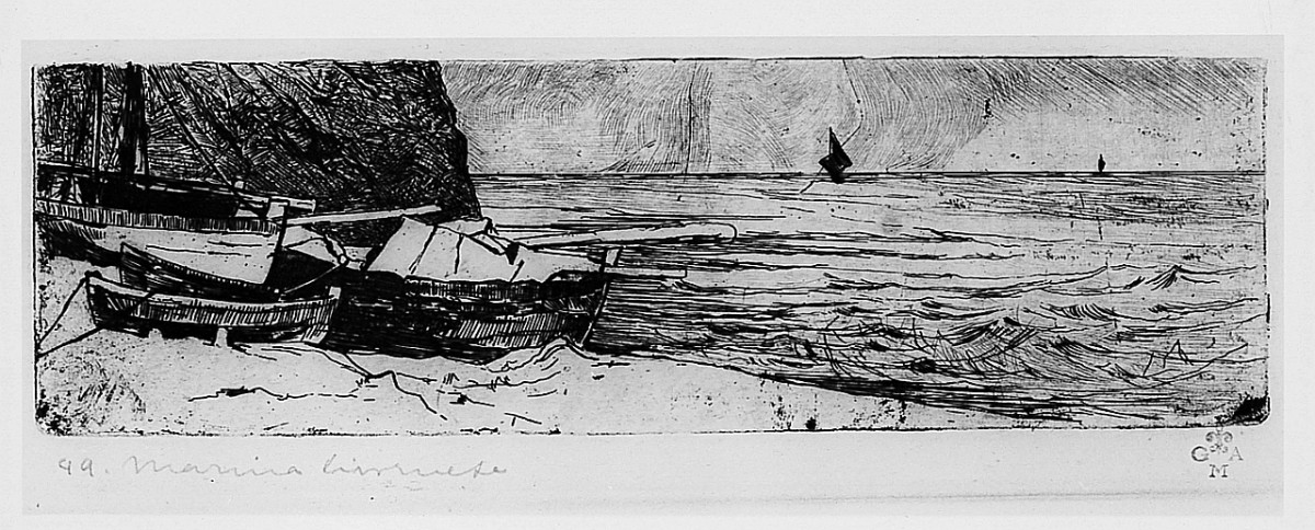 Paesaggi: spiaggia. Mare. Mezzi di trasporto: barche