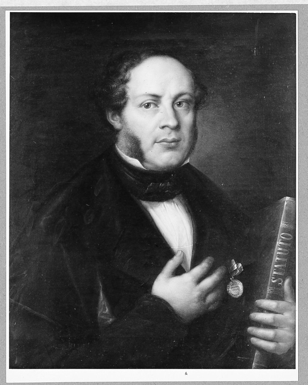 - NOTIZIE STORICO CRITICHE note:proviene dalla Galleria degli Uffizi, corridoio vasariano, magazzino Uffizi nel 1957, alla Moderna dal 19-7-1979; il personaggio ritratto mostra una medaglia sulla quale è scritto: CONSIGLIO/GENERALE/1848; questo ritratto dell'uomo politico e giurista Vincenzo Salvagnoli (Empoli 1802-Pisa 1861) che fece parte del gabinetto Ricasoli del 1859, potrebbe essere giunto nella collezione iconografica subito dopo la morte dell'effigiato. Non è tuttavia documentato prima della verifica inventariale del 1906, subito dopo la prima guerra mondiale era esposto nel Corridoio vasariano. Il riferimento a Rosari (sic) nell'inventario del 1890, che allude evidentemente a Vincenzo Rasori (1793-1863), come autore del ritratto, non è confermato. (S.P)