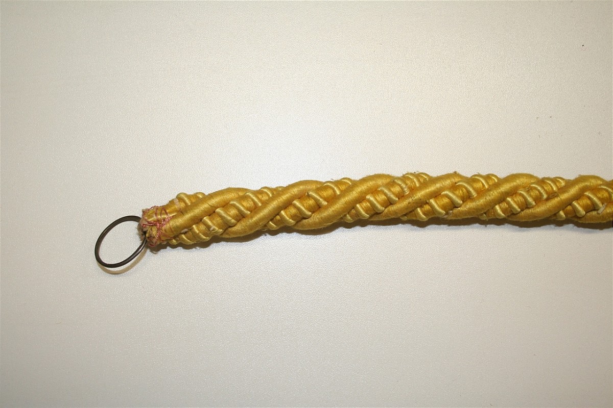 Quattro cordoni in seta gialla terminanti con un anello metallico alle due estremità