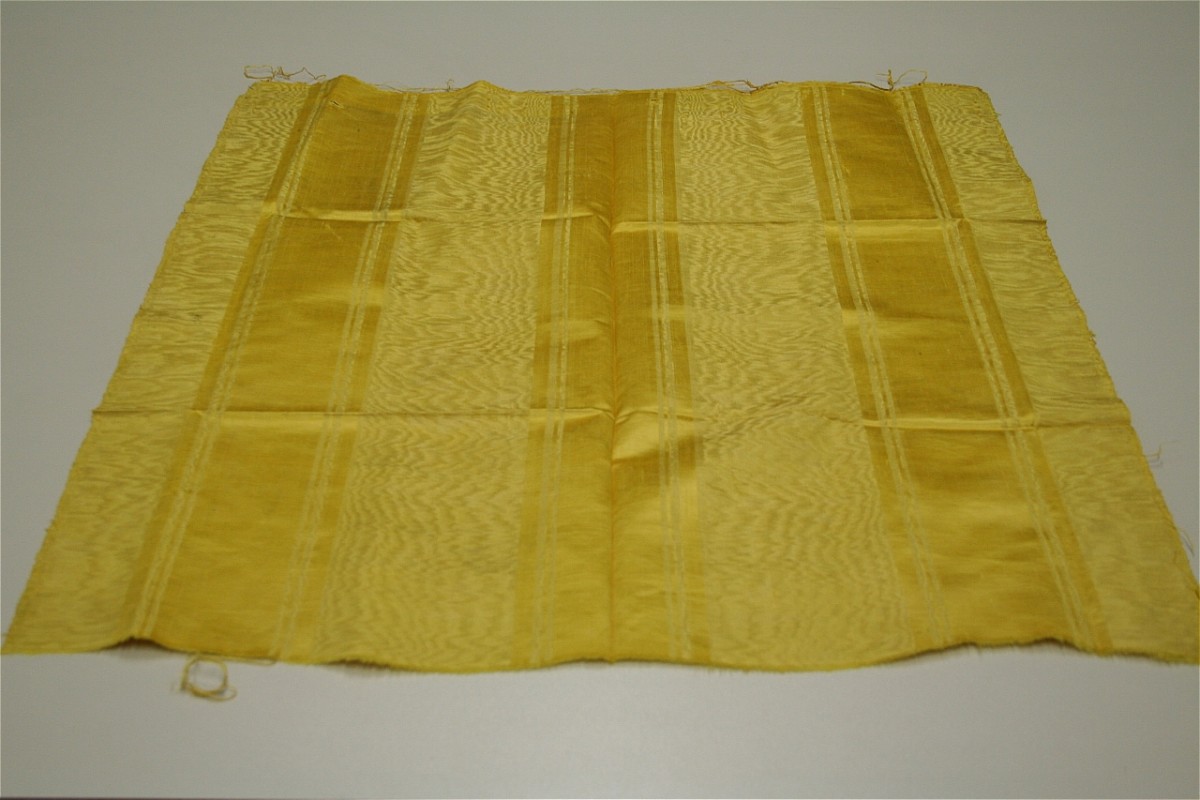 Tessuto in 7 frammenti in pekin di seta, gros de Tours e raso) di colore giallo. I frammenti sono degli avanzi dei palchi del Teatro Verdi