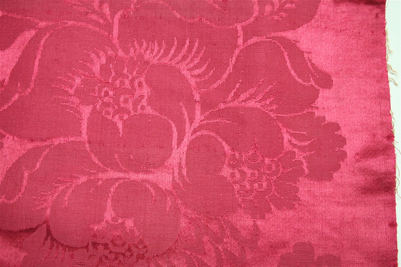 Sei frammenti di tessuto di seta in damasco grod de Tours color cremisi