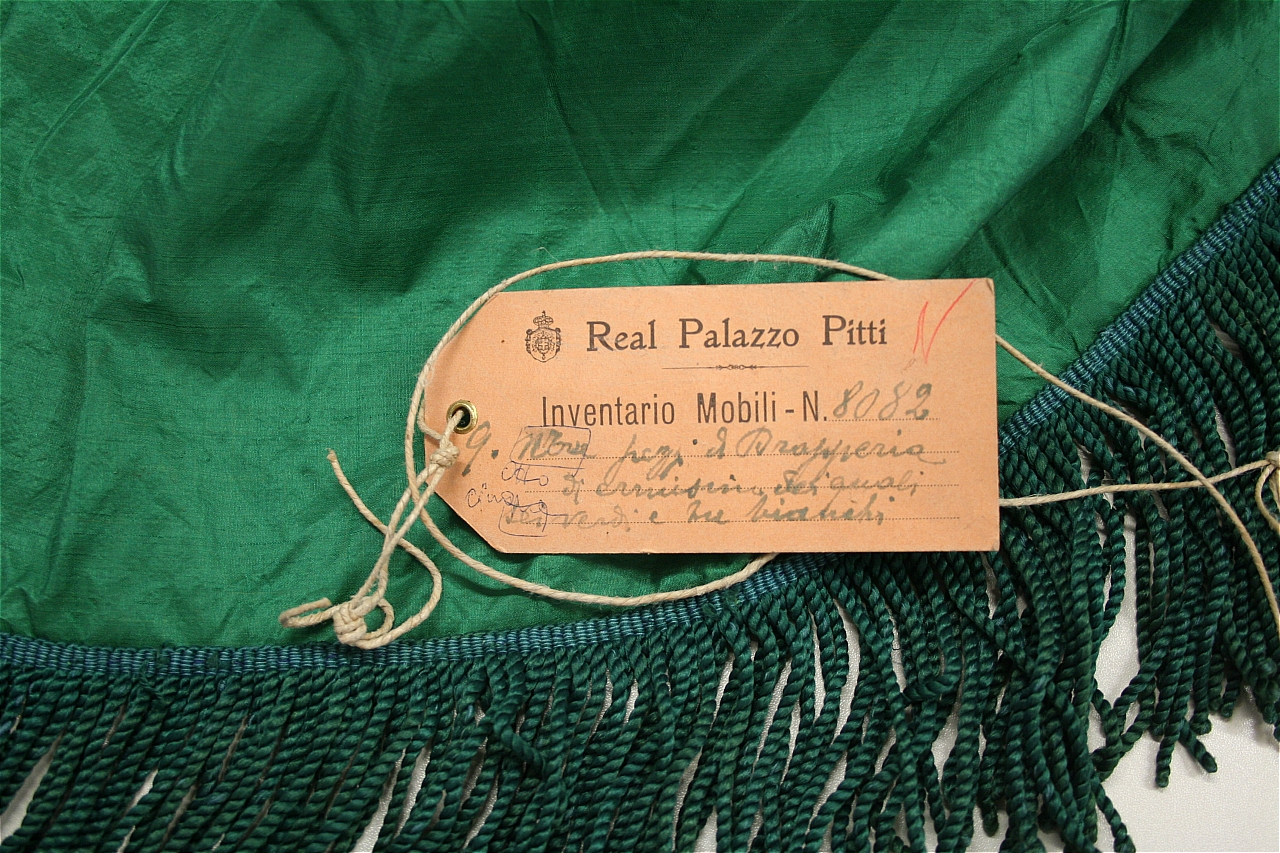 - ISCRIZIONI sul cartellino - Real Palazzo Pitti/ Inventario Mobili - N. 8082/ 9. (...) pezzi di drapperia di ermisino dei quali sei verdi e due bianchi (nero) - corsivo -