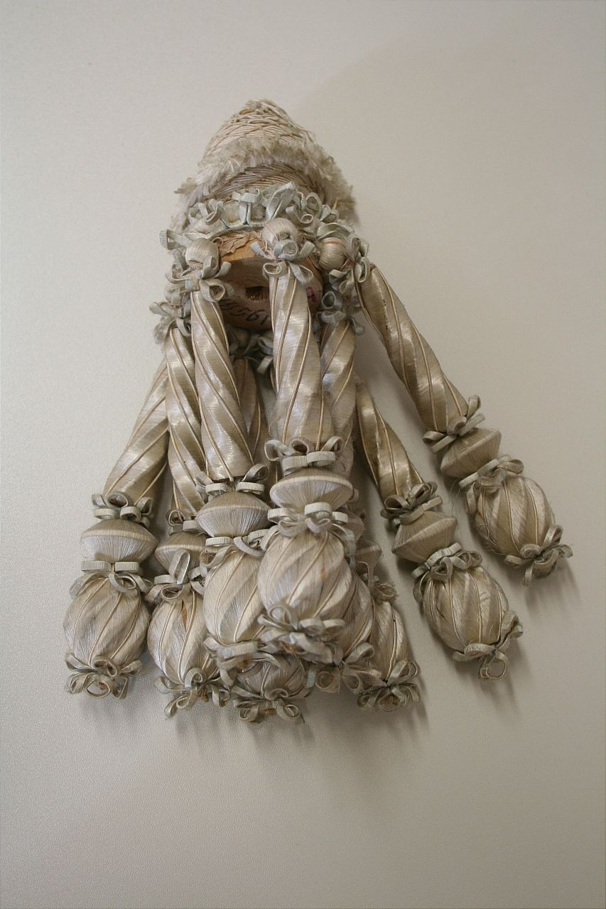 Nappa e grillotti in legno rivestiti in seta color bianco avorio