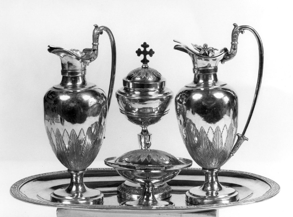 - NOTIZIE STORICO CRITICHE La pisside da viatico appartenente al servizio in argento dorato del cardinale Cosimo Corsi (1798-1870), arcivescovo di Pisa dal 1853 al 1870, reca caratteri stilistico-formali prettamente neoclassici: la coppa con coperchio si presenta con una forma semplice e funzionale, che rimanda a una figura geometrica elementare, l'ovale