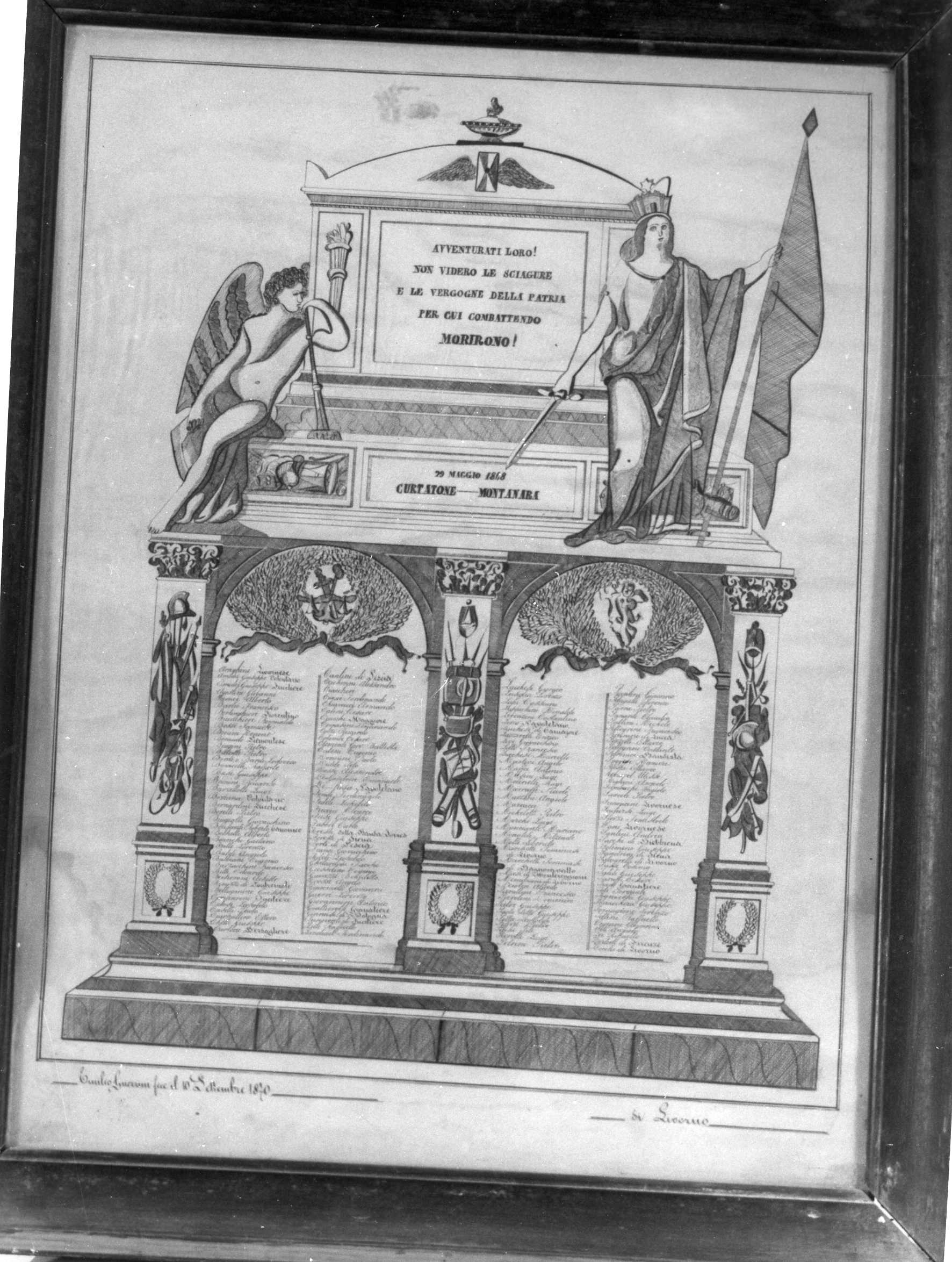 - ISCRIZIONI in alto - AVVENTURATI LORO ! / NON VIDERO LE SCIAGURE / E LE VERGOGNE DELLA PATRIA / PER CUI COMBATTENDO / MORIRONO ! / 29 MAGGIO 1849 / CURTATONE - MONTANARA - a impressione -