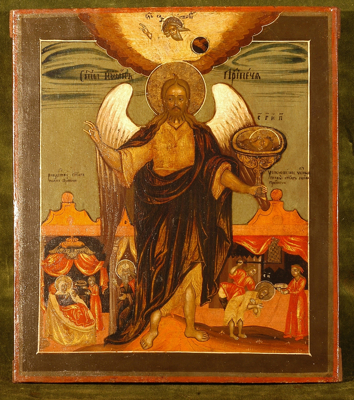 - ISCRIZIONI in alto, ai due lati del santo - SAN GIOVANNI IL PRECURSORE - caratteri cirillici - a pennello -