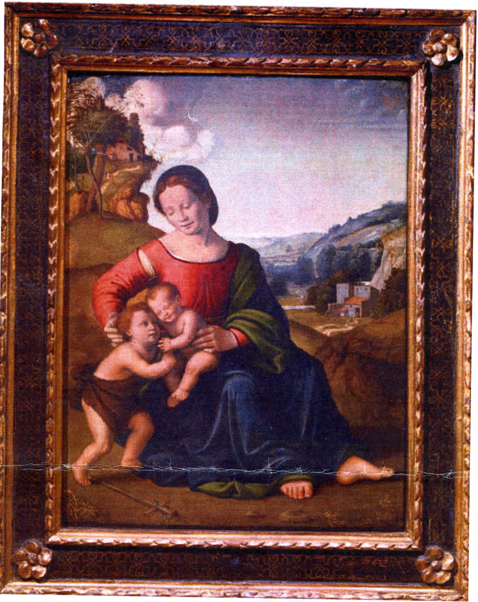 Dipinto su tavola raffigurante la 'Madonna col Bambino e San Giovannino'