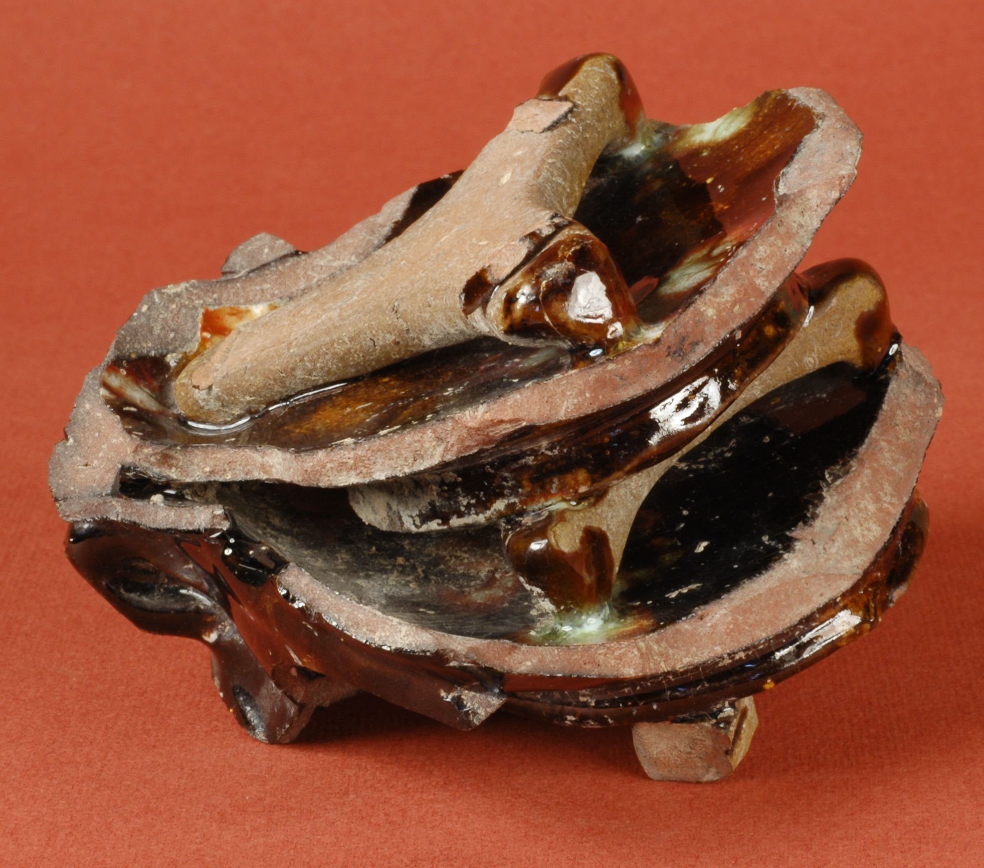 Scarto di produzione di ceramica. L'oggetto è costituito da due tazze sistemate in pila e fuse in cottura con i distanziatori
