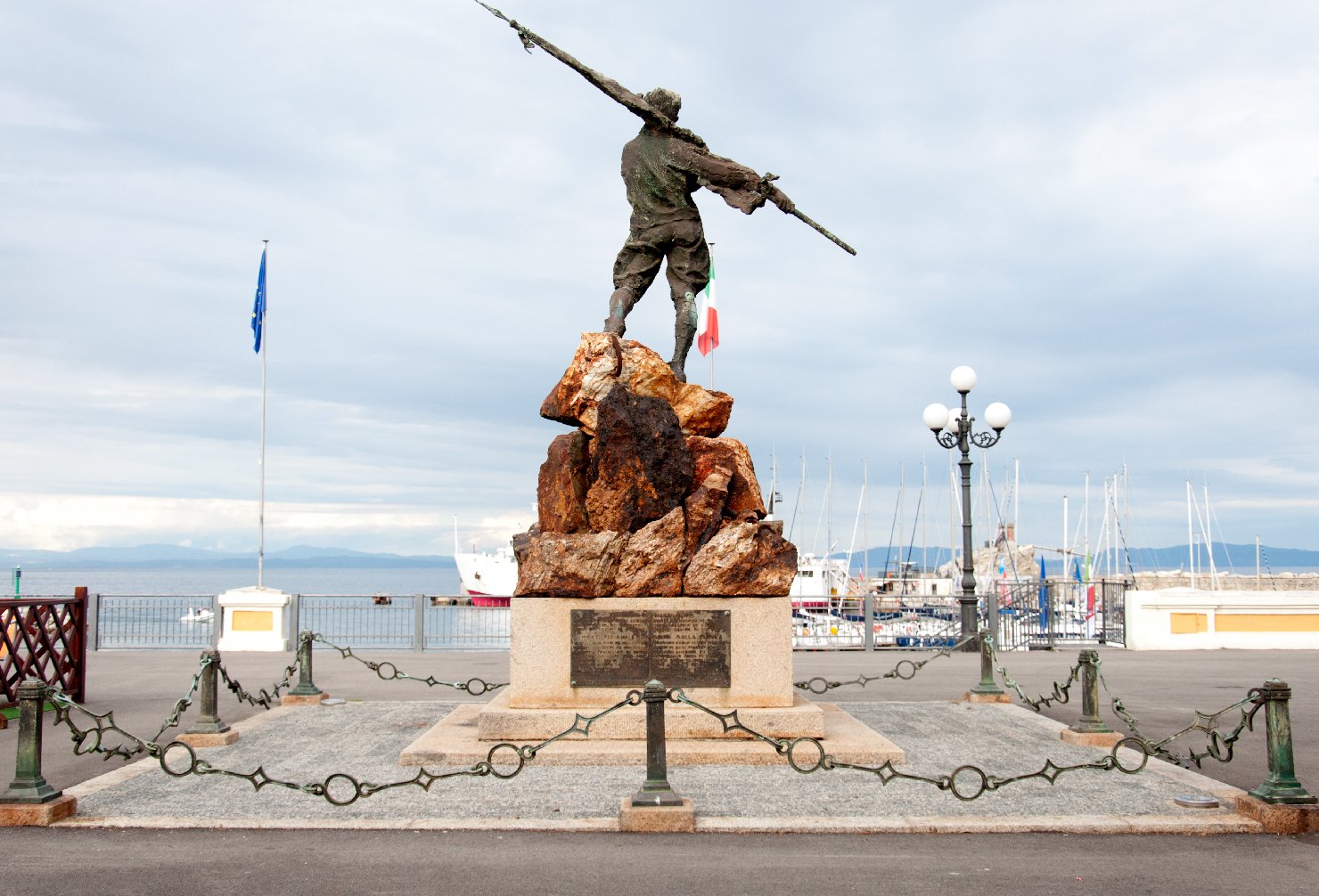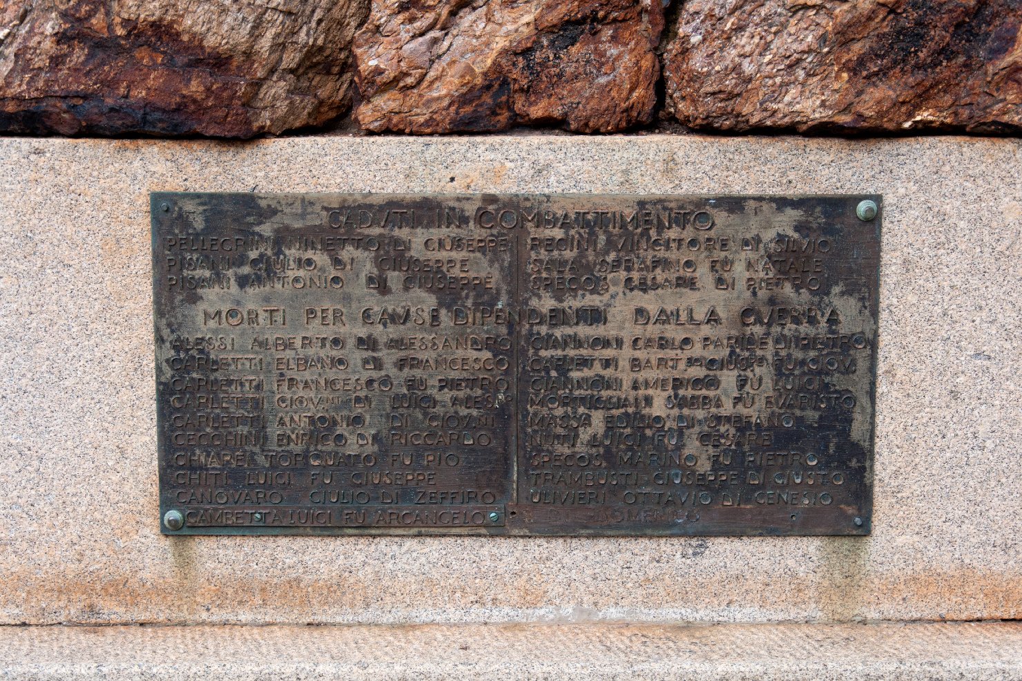 - ISCRIZIONI su una lapide posta sui gradini nella faccia pincipale del basamento - RIO MARINA/ AI SUOI GLORIOSI CADUTI/ NELLA GUERRA 1915-18/ IV XI MCMXXII - lettere capitali - a incisione -