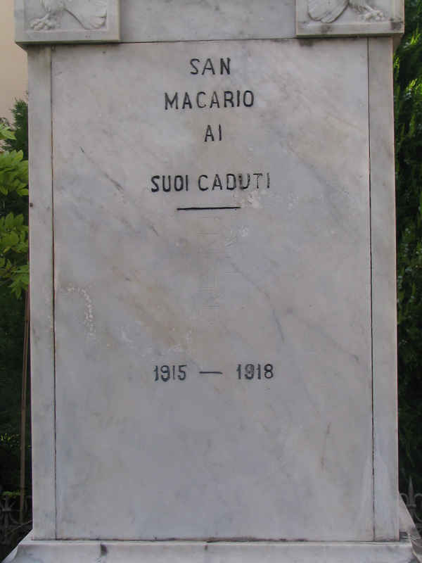 - ISCRIZIONI lato sinistro - SAN/ MACARIO/ AI/ SUOI CADUTI/ 1915 - 1918 - capitale - a incisione -