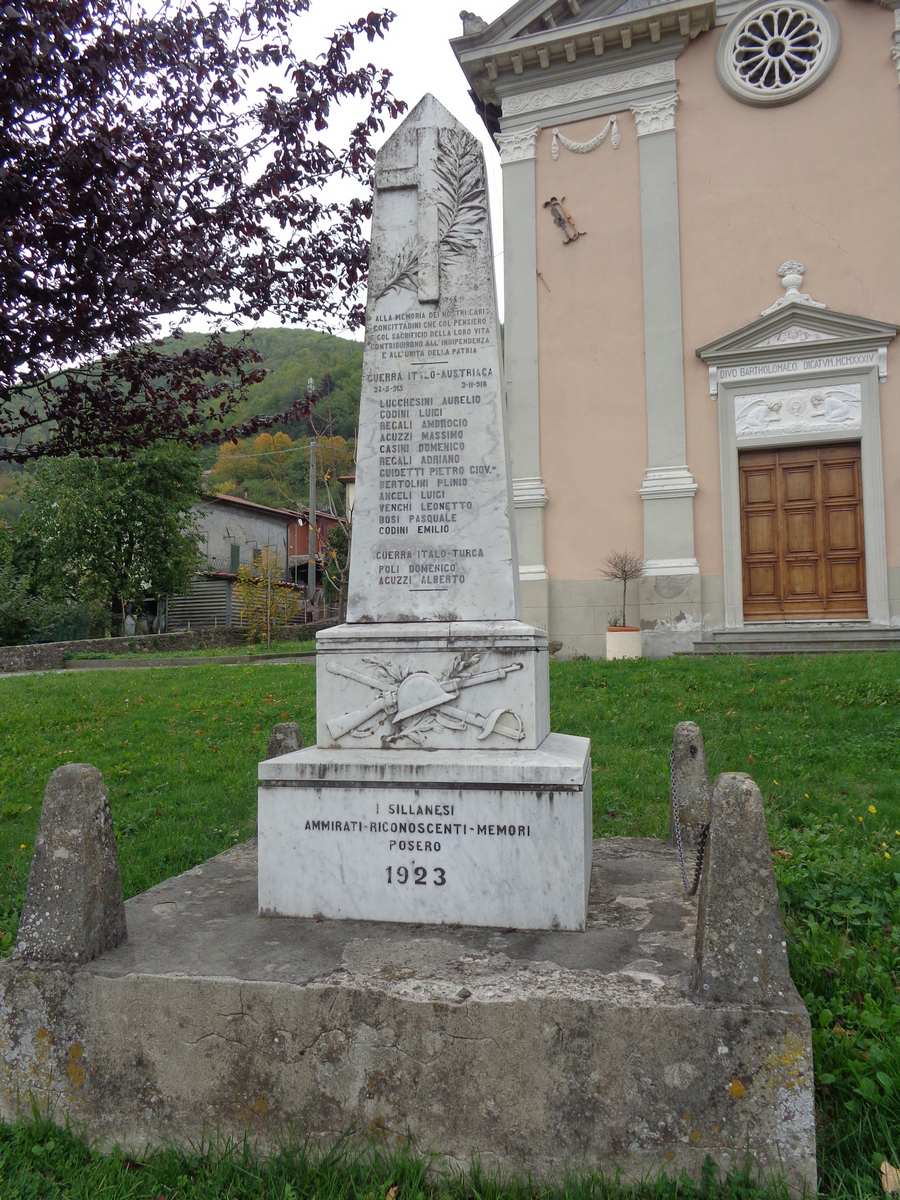 - NOTIZIE STORICO CRITICHE L’opera fu commissionata da un comitato locale e realizzata nel 1923. Bib.: Archivio ANCR Lucca, nota n° 5584, nota del Comune di Sillano all’ANCR di Lucca, 23 ottobre 1995; Salvagnini G., La scultura nei monumenti ai Caduti della prima guerra mondiale in Toscana, Firenze, 1999; Artista moderno, 1926,p. 153; Puliti M., Monumenti ai Caduti in Garfagnana. Guerra 1915-1918. Scheda Sillano; Da Sillano, in “La Garfagnana”, 2 luglio 1923