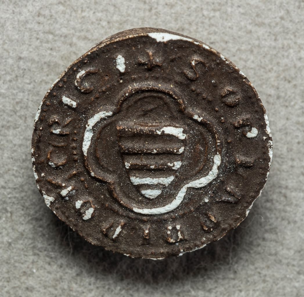 Forma circolare. Legenda gotica circondata da doppia coroncina globulare. Nel campo è presente uno stemma all'interno di una formella quadriloba