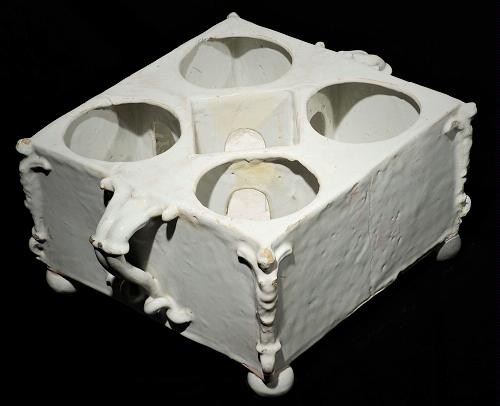 Rinfrescatoio quadrangolare biansato con piedini in stile “bianco-Faenza” della prima metà del XVII secolo