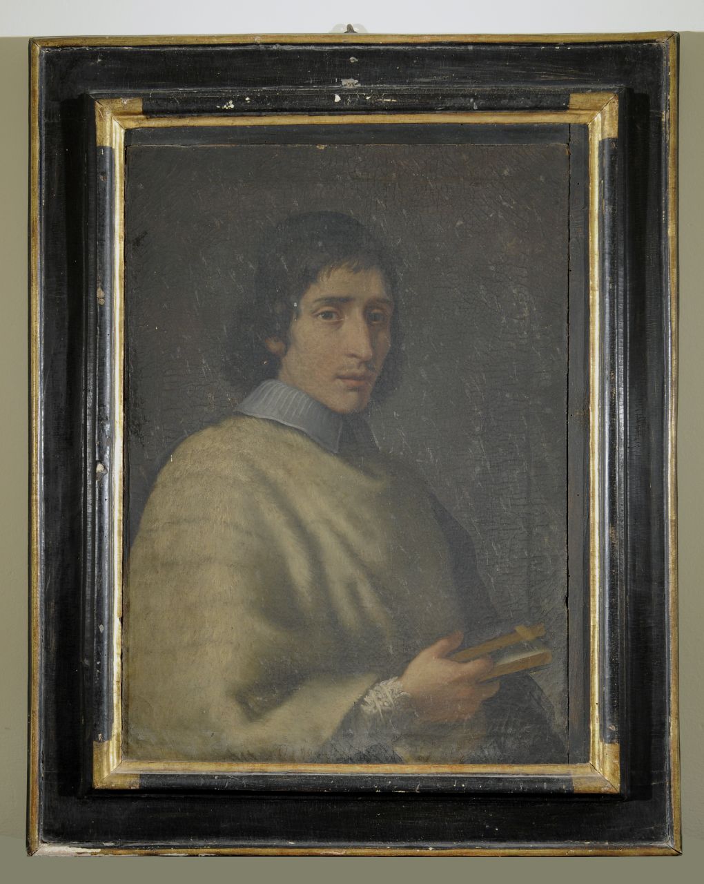 - NOTIZIE STORICO CRITICHE Questo e gli altri dieci dipinti sono stati notificati in quanto inscindibile nucleo collezionistico relativo alla famiglia senese dei Sansedoni, dal cui palazzo affacciato su Piazza del Campo provengono; nel 2015 sono passati in un’asta Pandolfini a Firenze. La mozzetta di ermellino permette di riconoscere il ritratto quale canonico della cattedrale di Siena. I caratteri del dipinto indicherebbero una datazione al terzo quarto del Seicento in riferimento a un pittore senese di buone capacità. L’identificazione di questo giovane ecclesiastico pertanto ricade su Alessandro di Ambrogio Sansedoni (1638-1710) che venne eletto tesoriere del Capitolo della Metropolitana nel 1656 a soli 17 anni, e che a partire dal 1660 tenne le redini della famiglia, tessendo rapporti con le più potenti famiglie senesi, attraverso le quali portò i propri congiunti ad importanti cariche e ad ambìti matrimoni. Il dipinto potrebbe pertanto essere individuato nel quadro “largo b.o, e mezzo alto due con ornato ritratto del Tesoriere Alessandro Sansedoni” (le misure corrisponderebbero), che nel 1773 adornava la “camera della cantonata” della villa della Selva, una delle residenze dei Sansedoni posta nel contado senese (cfr. bibliografia)