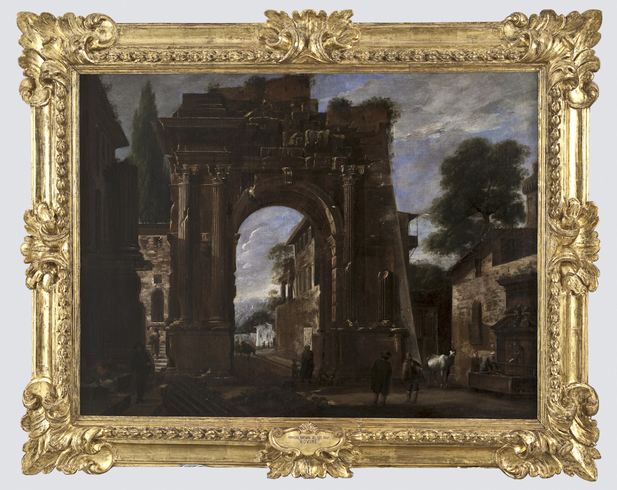- NOTIZIE STORICO CRITICHE Il dipinto si trovava all'inizio del secolo scorso a Palazzo Pitti, da dove passò nel 1925, come di autore ignoto, alla Camera dei Deputati. L'attribuzione delle rovine alla mano di Viviano Codazzi si deve a Evelina Borea (in "Caravaggio e caravaggeschi nelle Gallerie di Firenze", catalogo della mostra [Firenze, Palazzo Pitti, 1970], a cura di E. Borea, Firenze 1970, p. 88, n. 56), che per la luminosità infusa e per il rapporto tra le figurine e le architetture ha posto la tela in relazione con altre due vedute delle collezioni fiorentine (inv. O.d.A. 1911, nn. 773-774; cfr. E. Borea, in "Caravaggio e caravaggeschi nelle Gallerie di Firenze", catalogo della mostra [Firenze, Palazzo Pitti, 1970], a cura di E. Borea, Firenze 1970, pp. 88-89, nn. 57-58) riconducibili per la studiosa agli stessi anni. Anche per Marco Chiarini (in "I quadri della collezione del Principe Ferdinando", in "Paragone", 301, 1975, pp. 57-98) l'opera qui considerata sarebbe da accostare alle due vedute fiorentine identificate dallo studioso con le due tele "dipintovi di mano del Viviano vecchio, architetture e le figure di mano di Vuander Cavell, e gli animali, con ornamenti intagliati e tutti dorati, n. 259" ricordate nell'inventario redatto alla morte del Gran Principe Ferdinando de' Medici (ASF, Guardaroba Medicea 1222, c. 6, n. 259). Sulla base di tale documento, Chiarini ha ricondotto l'esecuzione delle figurine che animano la scena del dipinto della Camera dei Deputati ad Adriaen van der Cabel (1630 o 1631-1705) pittore e incisore olandese presente a Roma intorno alla metà del XVII secolo. Diversamente, Giuliano Briganti (in G. Briganti, L. Trezzani, L. Laureati, "Viviano Codazzi", in "I pittori bergamaschi dal XIII al XIX secolo. Il Seicento", I, Bergamo 1983, pp. 645-741, in particolare p. 690, n. 21, fig. a p. 732) ha assegnato inizialmente le piccole figure a Michelangelo Cerquozzi e successivamente al pittore fiammingo Jan Miel (G. Briganti, in G. Briganti, L. Trezzani, L. Laureati, "I Bamboccianti. Pittori della vita quotidiana a Roma nel Seicento", Roma 1983, p. 110, nota 12). Presso Barnsley House, Gloucestershire, si conserva un'altra versione data al Codazzi e al Cerquozzi acquistata sul mercato inglese negli anni Cinquanta del Novecento (cfr. D. Ryley Marshall, "Viviano and Niccolò Codazzi and the Baroque Architectural Fantasy", Milano-Roma 1993, pp. 202-203, n. VC 91)