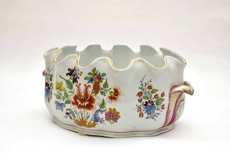 Rinfrescatoio in porcellana con invetriatura stannifera, decoro policromo e dorature