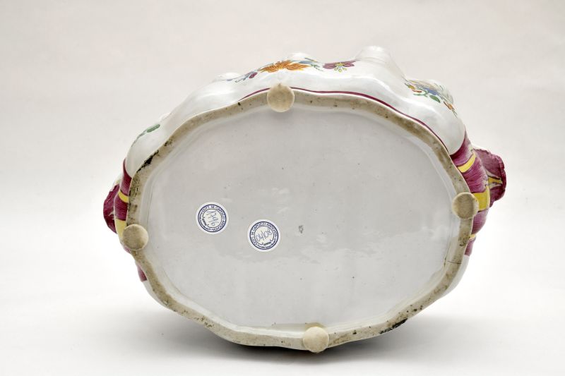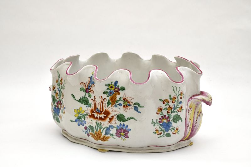 Rinfrescatoio in porcellana con invetriatura stannifera, decoro policromo e dorature