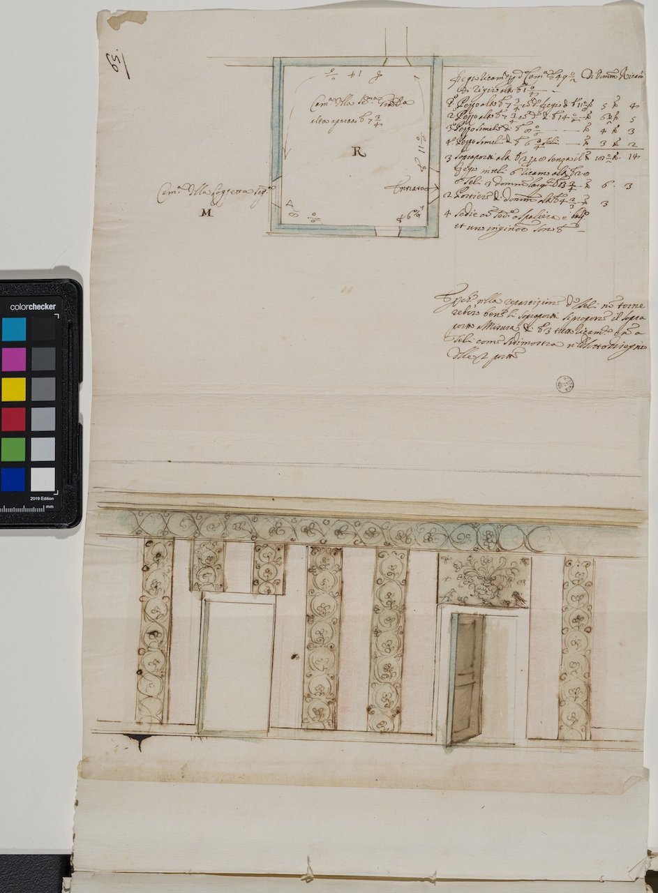 pianta e alzato della camera della Granduchessa nella villa medicea di Poggio Imperiale, con varie note manoscritte