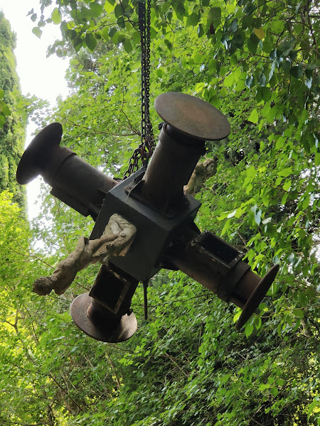 Due sculture inserite nella croce dei respingenti di treno