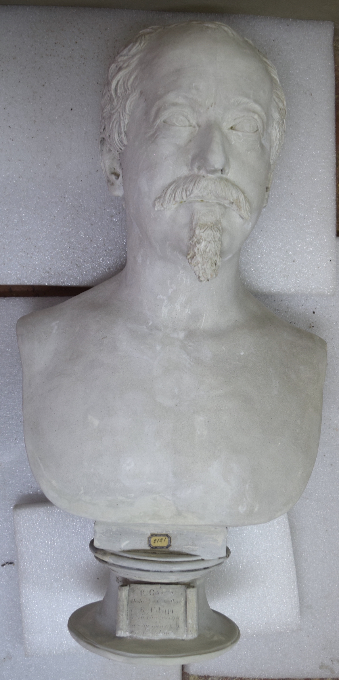 - NOTIZIE STORICO CRITICHE Il busto raffigura il medico dell'ospedale di Santa Maria Nuova Federigo Ermanno Filippi (1809-1868) e come leggiamo nel cartiglio, fu donato da un paziente guarito grazie alle cure del medico. L'opera fa forse parte di un gruppo di sculture depositate presso il Museo di Storia della Scienza, oggi Museo Galileo, nel 1938, quando venne smantellato l'arredamento della biblioteca ottocentesca dell'Ospedale di Santa Maria Nuova per lo spostamento del fondo librario presso la nuova sede di Careggi. La biblioteca ottocentesca era stata allestita nel 1872 nell'ex chiesa di Santa Maria degli Angeli (Andreucci 1871, pp. 4-19; Diana 2006, pp. 62-66; Ricci 2021; Belli - Ricci 2022) ed era arredata con una serie di dipinti (vd. 0901401267) e di sculture. Nel 1889 e nell'inventario del 1933 sono registrate ventiquattro opere tra busti, medaglioni e maschere mortuarie, ma per alcuni di questi non viene indicato il soggetto (Bacci, in cds). E' quindi possibile che l'opera fosse tra quelle non identificate o che, in alternativa, sia stata trasferita al museo da un altro ambiente dell'ospedale in un momento successivo. Nel 2022 alcuni busti, tra cui quello in oggetto, sono stati riportati a Santa Maria Nuova per essere restaurati e inseriti nel percorso museale dell'ospedale