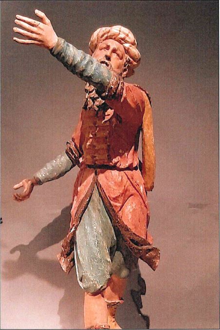- NOTIZIE STORICO CRITICHE La figura maschile, identificata come Giuseppe d’Arimatea, è parte di gruppo scultoreo, in origine un Compianto o una Deposizione dalla Croce, di ignoto autore. Tuttavia, il modellato di alta qualità ed alcune componenti stilistiche possono essere messe in relazione con la maniera di noti scultori lombardi attivi tra Cinquecento e Seicento. In particolare, la figura può essere avvicinata, per il dinamismo dal forte effetto teatrale, a figure di analogo soggetto intagliate da Andrea da Corbetta per i Compianti conservati presso il Santuario di Saronno e di San Vittore a Meda