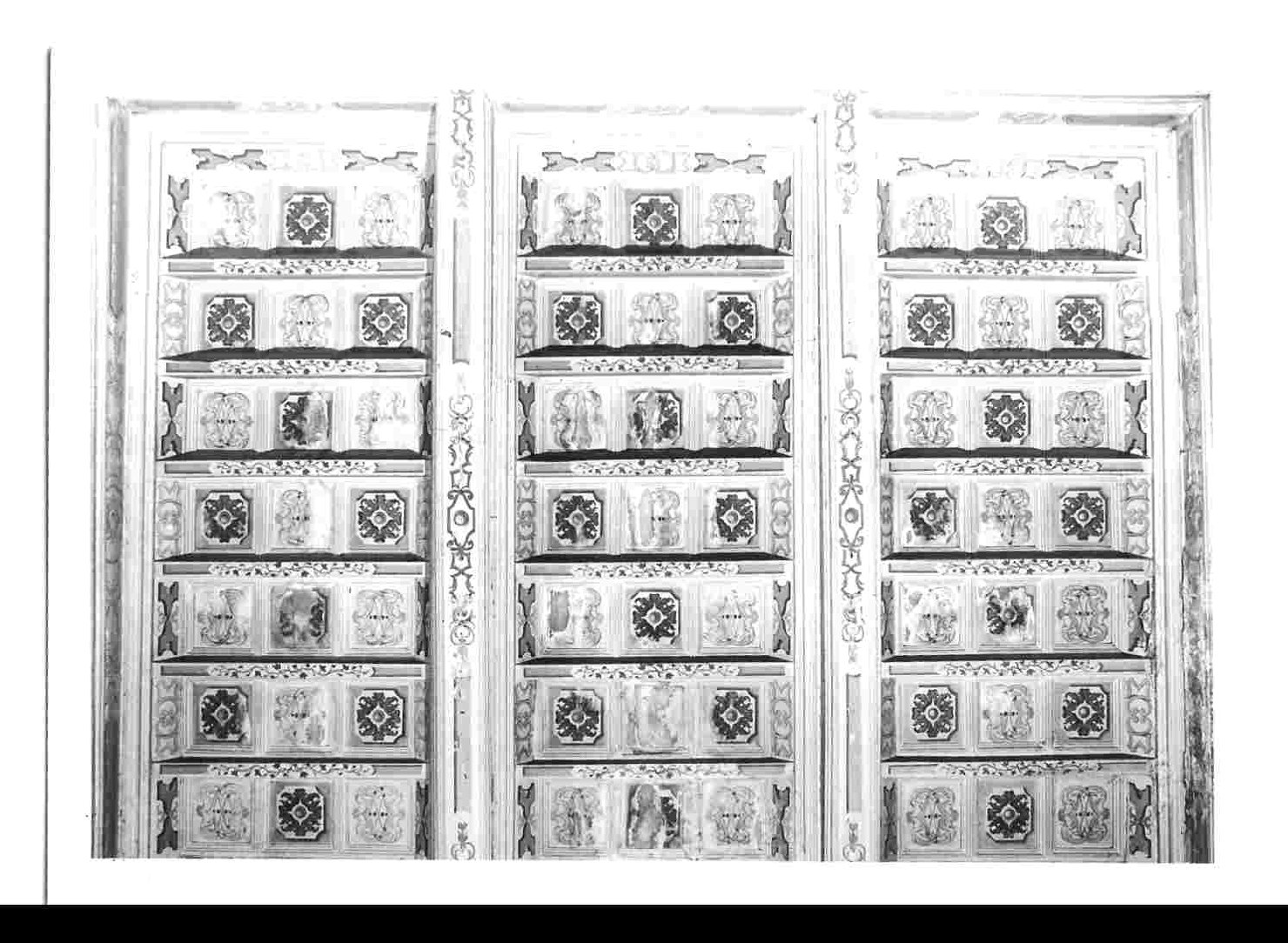 - NOTIZIE STORICO CRITICHE Il soffitto a cassettoni fu tipico del mondo classico greco-romano e scomp arve quasi completamente nel medioevo per poi riapparire nel '400. Da una semplicità cromatica e strutturale si passò nei secoli seguenti a forme e composizioni sempre più elaborate e complesse. Nel soffitto in oggetto il disegno floreale stilizzato e la delicatezza dei colori arricchisce la sem plicità strutturale della parte lignea