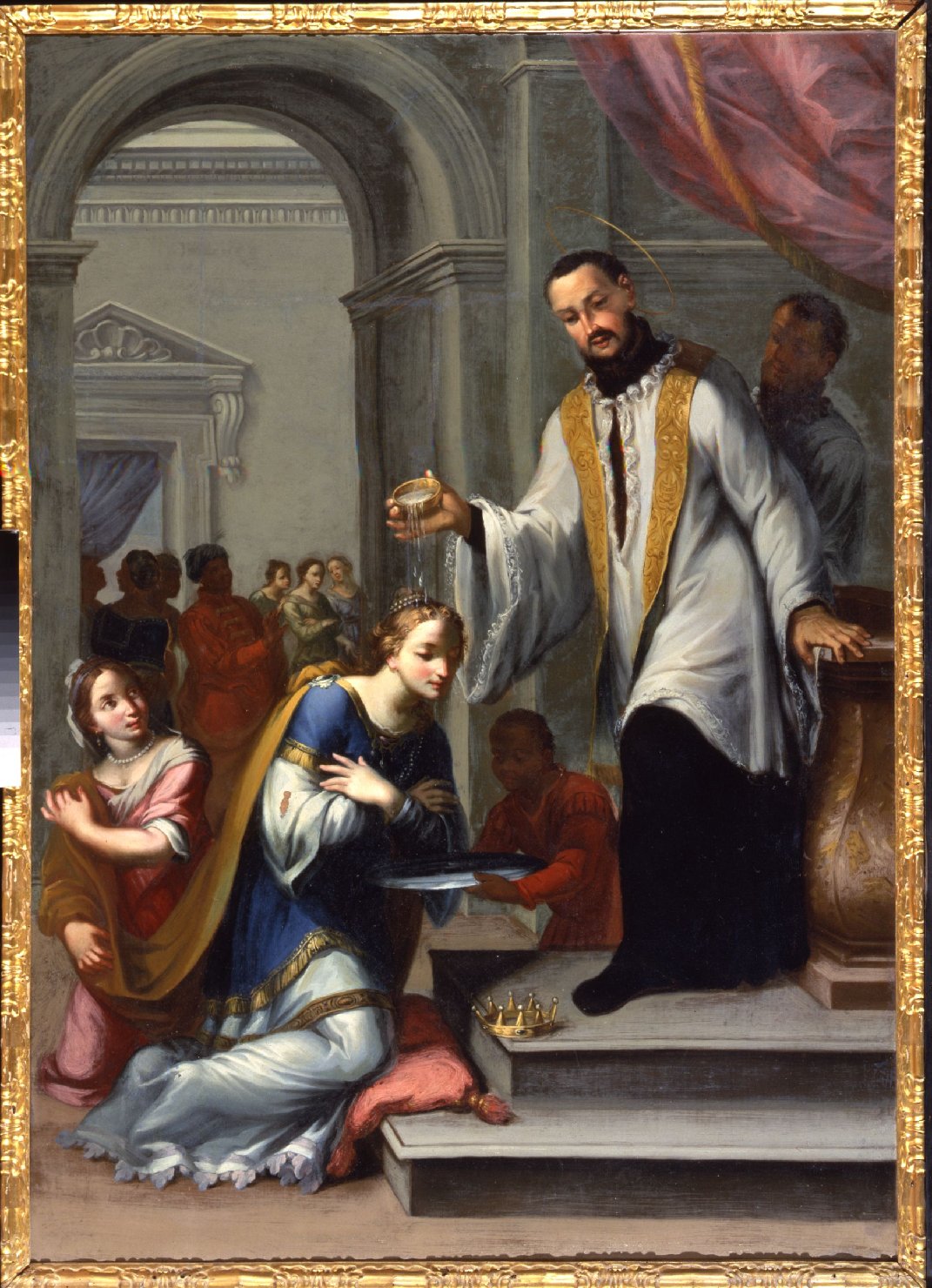 - NOTIZIE STORICO CRITICHE L'opera proviene dalla Cappella dei Decemviri, dove si trovava insieme ad altre tele raffiguranti i Santi protettori di Perugia. Il pittore legato all'Accademia di Belle Arti di Perugia, svolse il suo apprestato presso il pittore perugino Pietro Montanini. Succesivamente si trasferì a Roma, dove studiò con Carlo Maratta per circa sette anni. Al suo ritorno nella città natale produsse numerose opere di carattere religioso e ritratti. Lo stile propone una rielaborazione alquanto impersonale di temi e modi romani. Per la cappella Decemvirale dipinse anche l'"Estasi di San Filippo Neri"