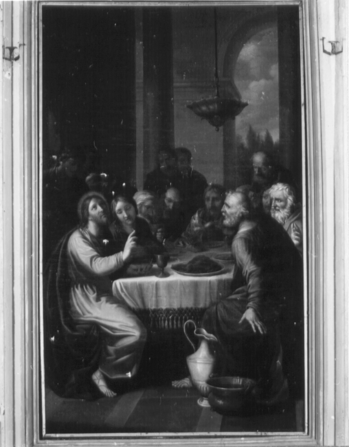 - NOTIZIE STORICO CRITICHE Il dipinto è uno dei lavori eseguiti dal secondo degli artisti impegnati nella cappella del Sacramento, Coccetti Liborio, verosimilmente intorno al 1786. Di nascita folignate, fu prevalemtemente attivo con Papa Pio VI come decoratore nel palazzo romano fatto erigere per la sua famiglia e nella rocca abbaziale di Subiaco utilizzando prevalentemente il motivo a grottesche. Inoltre a Spoleto intorno agli anni settanta aveva lavorato nel palazzo Benedetti di Montevecchio e nella loro cappella gentilizia in San Domenico (Rangoni, 1990, p. 671; Barroero L., 2002, p. 348)