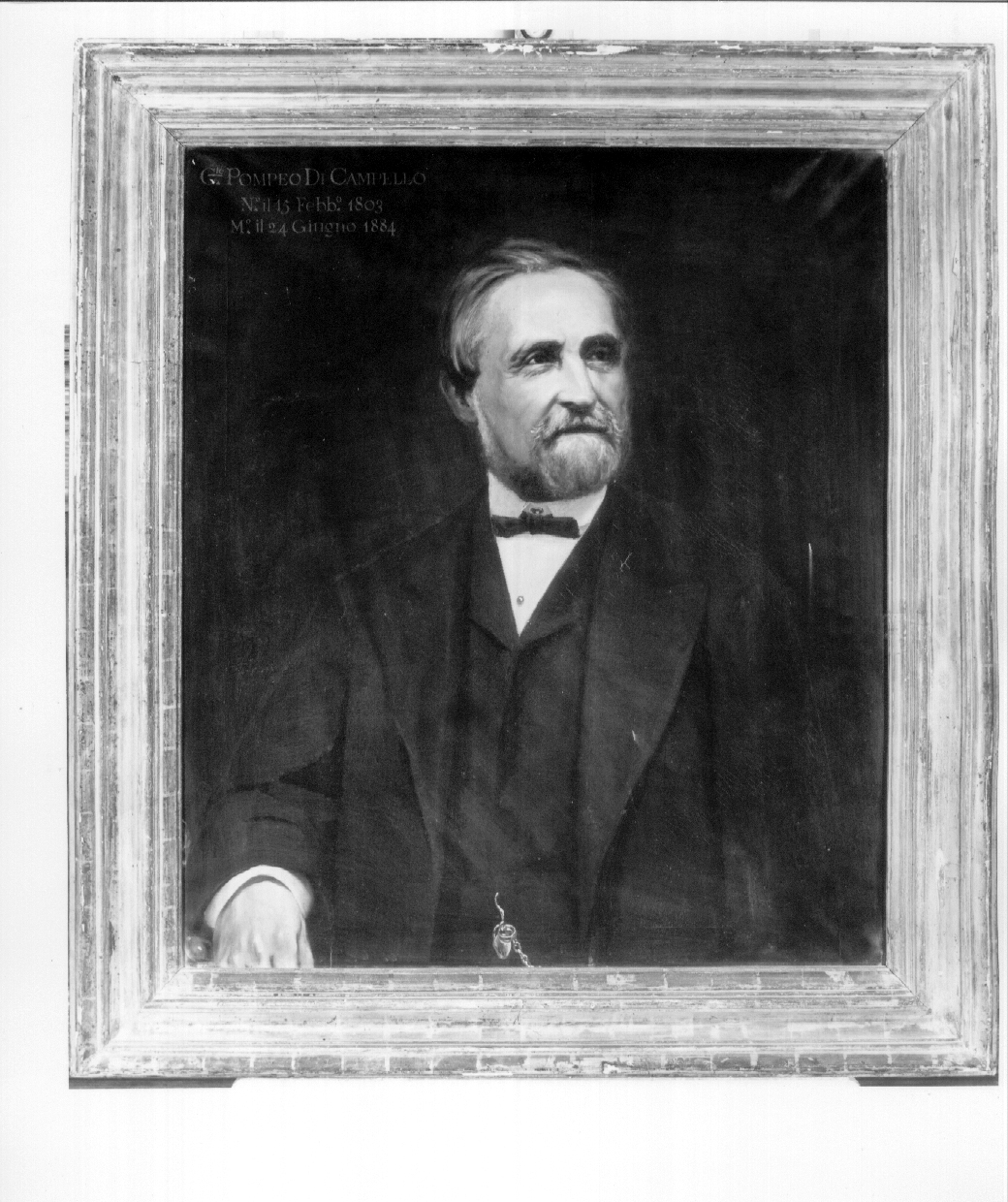 - ISCRIZIONI in alto a sinistra - C(ON)TE POMPEO DI CAMPELLO/ N° IL 15 FEBB° 1803/ M° IL 24 GIUGNO 1884 - lettere capitali - a incisione -