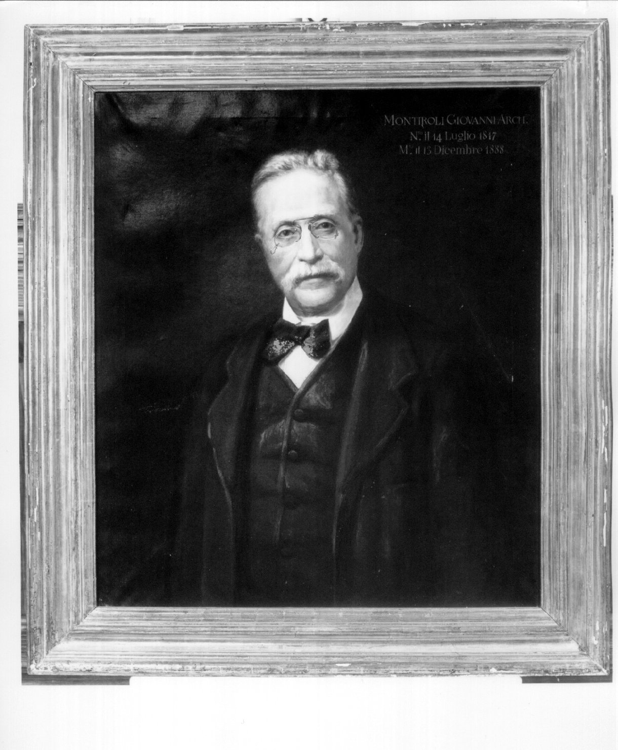 - NOTIZIE STORICO CRITICHE L'opera fa gruppo con altri tre ritratti di illustri cittadini spoletini eseguiti per la cifra di £.600 da Giuseppe Moscatelli nel 1896. Furono sistemate inizialmente dallo stesso Moscatelli, nella sala ritratti della Pinacoteca. Le cornici furono eseguite da Nazzareno Conti in stile Salvator Rosa per la somma di £.36