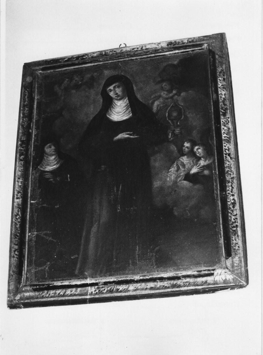 Nel dipinto è raffigurata S. Chiara con ostensorio in mano. Accanto a lei è presente S. Agnese, mentre a destra vi sono alcuni devoti e un angelo