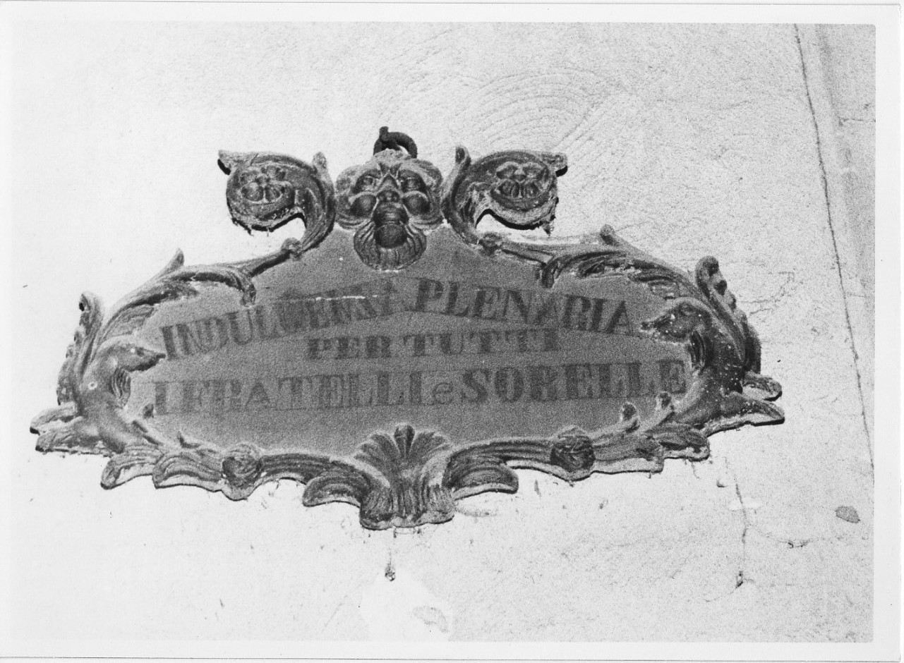 Tabella contenente la seguente iscrizione: "Indulgenza plenaria per tutti i fratelli e sorelle"