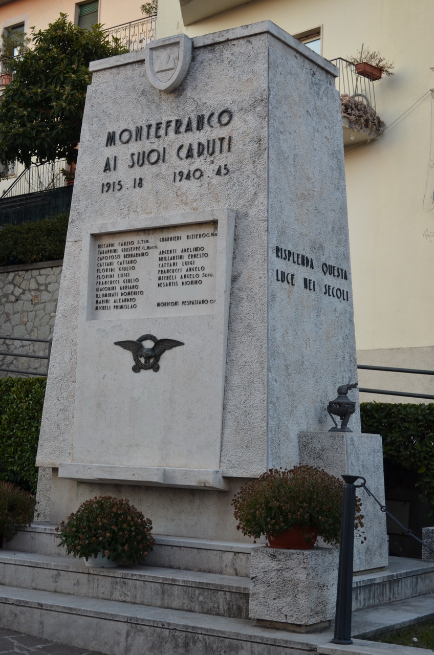 - ISCRIZIONI fronte - MONTEFRANCO/ AI SUOI CADUTI/ 1915 -18 1940-45 - maiuscolo - a caratteri applicati in bronzo -