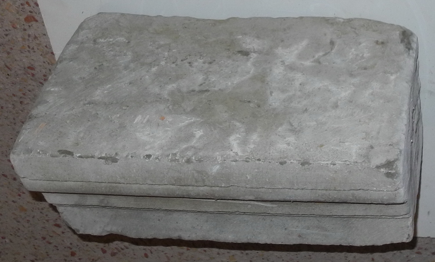 Elemento architettonico frammentario, parte di un cornicione. Profilo modanato liscio, formato dalla successione listello, gola diritta, dentello continuo, fascia e peduncolo