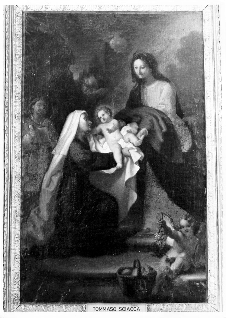 Personaggi: Madonna; Gesù Bambino; Santa. Figure: angelo custode