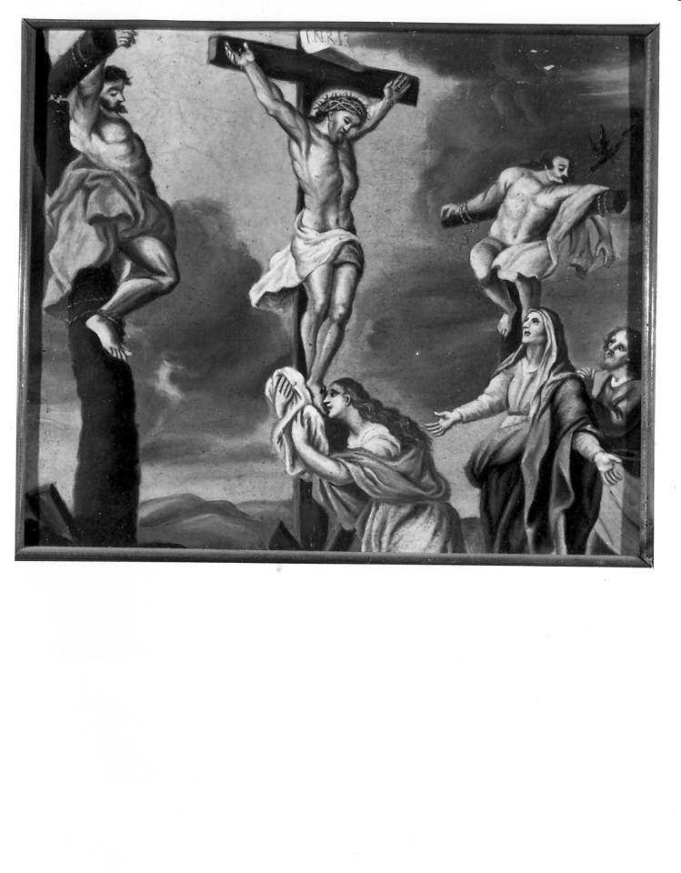 Personaggi: Gesù Cristo; ladroni; Madonna; San Giovanni; Maria Maddalena. Strumenti del martirio: croce; corona di spine. Paesaggi: monte Calvario
