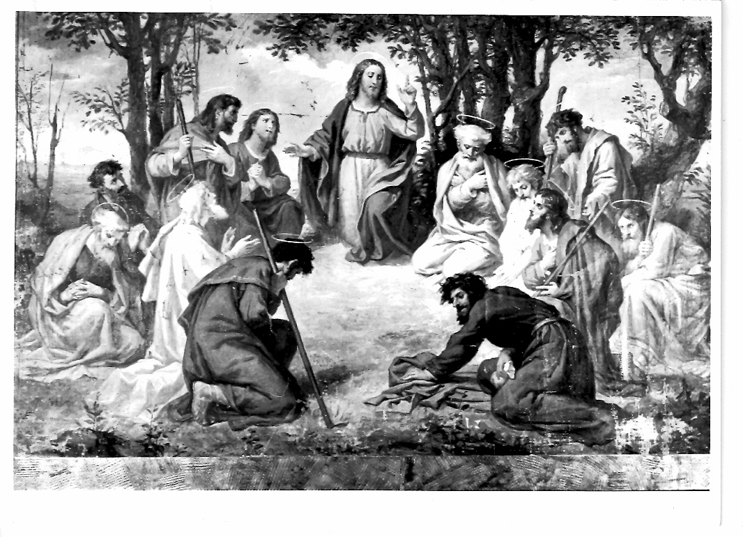 Personaggi: Gesù Cristo; Apostoli. Paesaggi: alberi