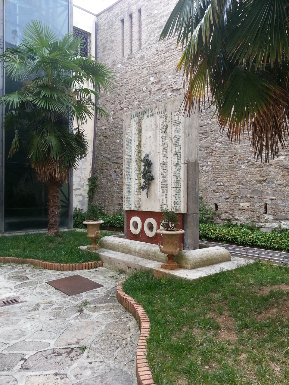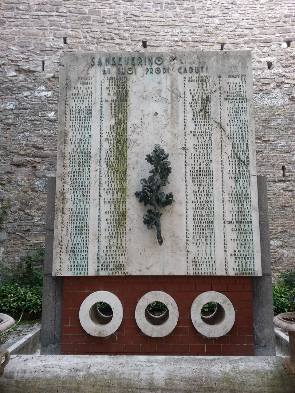 - ISCRIZIONI parte superiore lastra - SAN SEVERINO AI SUOI PRODI CADUTI (segue elenco caduti su quattro colonne) - a caratteri applicati in bronzo -