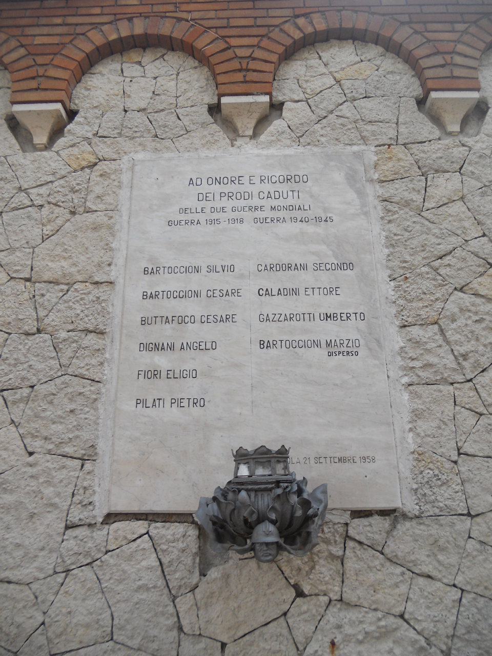 - ISCRIZIONI centrata - AD ONORE E RICORDO DEI PRODI CADUTI NELLE DUE GUERRE MONDIALI / GUERRA 1915-1918 (elenco di sei caduti) -