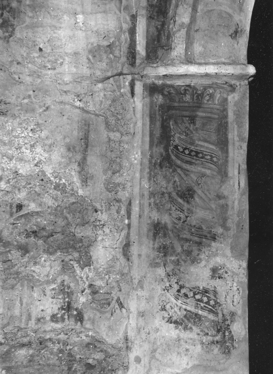 Architetture: colonna tortile con capitello corinzio e motivi decorativi romboidali