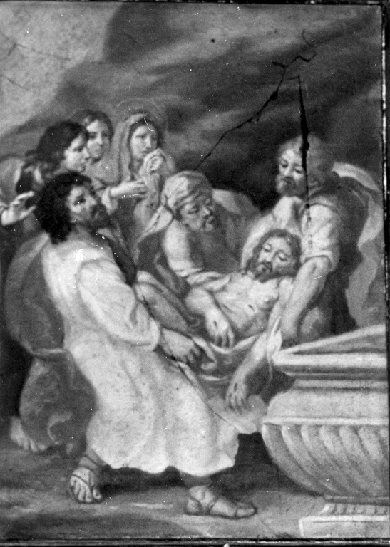 Personaggi: Gesù Cristo; Madonna; San Giovanni Evangelista; Santa Maria Maddalena. Figure: figure maschili. Oggetti: sarcofago